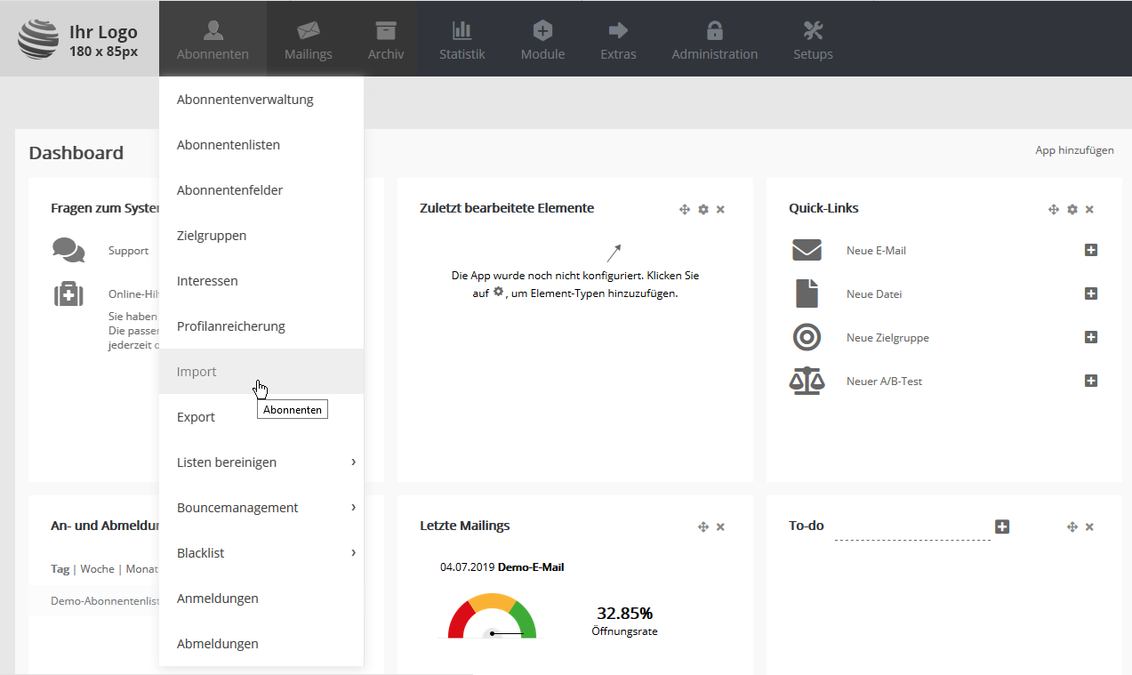 Zum Abspeichern Ihrer Daten wählen Sie bitte je nach Version Ihres Office-Paketes das Exportformat CSV UTF8 (Trennzeichen-getrennt) oder CSV (Trennzeichen-getrennt). Import Schritt für Schritt erklärtUm Ihre CSV-Datei in mailworxx zu importieren, wählen Sie im Menü 'Abonnenten' den Punkt 'Import':