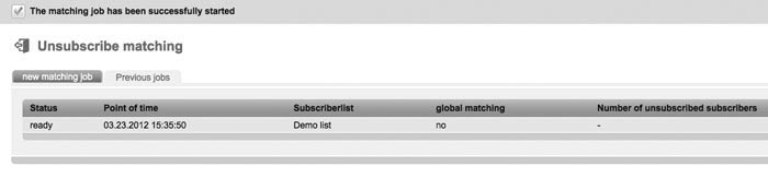 Now, mailworxx starts the matching and, after having finished, it informs you about the number of the deleted subscribers. |