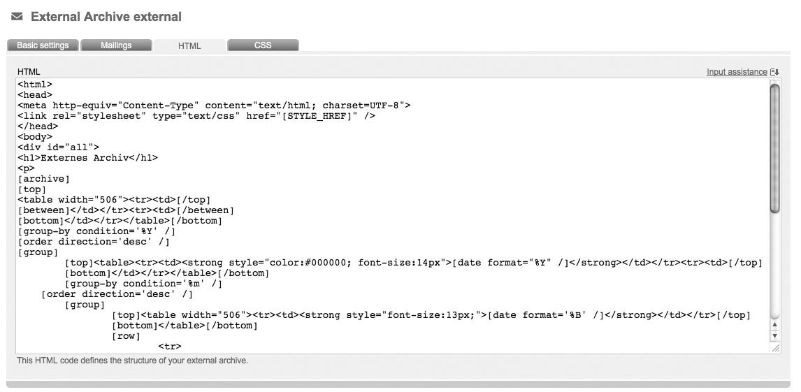 While creating your external archive, mailworxx generates an html source code in the background, which defines the structure of your external archive. If you want to edit the look of your shown archive, you have to edit the source code, which requires appropiate HTML knowledge.