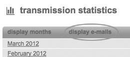 In the transmission- statistic you see the data collected from mailworxx (Traffic, Total). Also you see, if exist, the numbers of test-sendings, clicks on the subsriber-link and the number of subscribers who have completed the optin-confirmation. Next to the view 'display months' you also can select 'display e-mails'. So mailworxx outputs the above mentioned figures for each mailing.